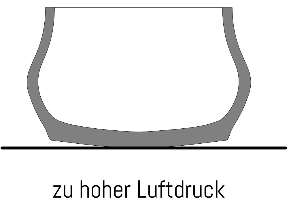 Luftdruck beinflusst die Breite der Reifenauflage und damit den Grip auf der Strecke und Auquaplaning bei Regen.